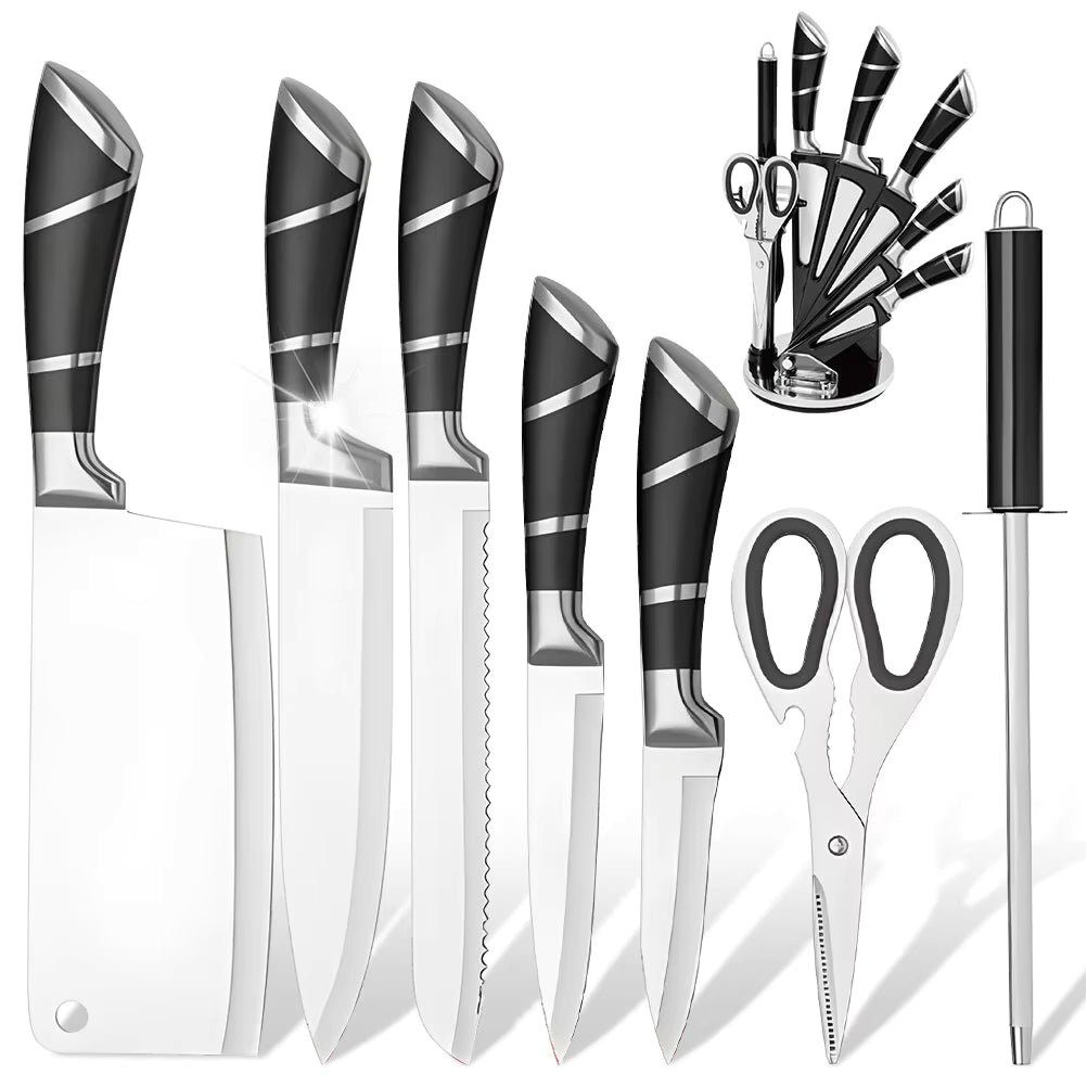 Tak! W zestawie znajduje się elegancki, obrotowy (360°) stojak akrylowy, który ułatwia przechowywanie noży i szybki dostęp do właściwego ostrza.